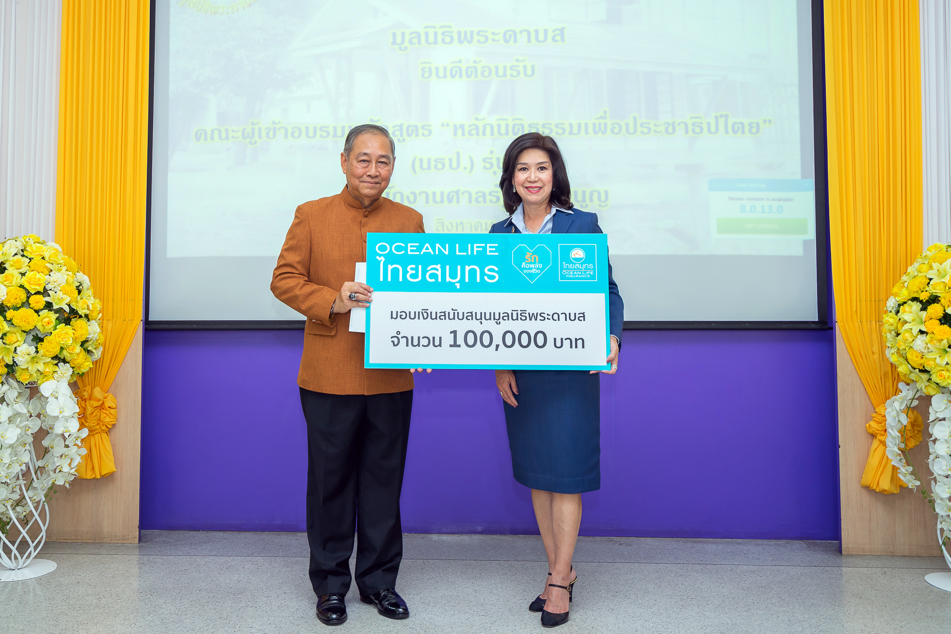 บมจ.ไทยสมุทรประกันชีวิต รักคือพลังของชีวิต โดยคุณนุสรา (อัสสกุล) บัญญัติปิยพจน์ กรรมการผู้จัดการ ได้มอบเงินสนับสนุนมูลนิธิพระดาบส จำนวน 100,000 บาท ให้แก่พลอากาศเอก ชลิต พุกผาสุข องคมนตรี กรรมการและเลขาธิการมูลนิธิพระดาบส เพื่อสานต่อแหล่งความรู้ที่ในหลวงรัชกาลที่ 9 สร้างไว้เพื่อช่วยเหลือผู้ยากจน ด้อยโอกาส ขาดแคลนทุนทรัพย์ให้ได้รับโอกาสเข้ามาเรียนวิชาชีพต่าง ๆ ในโอกาสที่เดินทางไปศึกษาดูงานมูลนิธิพระดาบสร่วมกับคณะสำนักงานศาลรัฐธรรมนูญ ในโครงการอบรมหลักสูตร “หลักนิติธรรมเพื่อประชาธิปไตย” รุ่นที่ 6