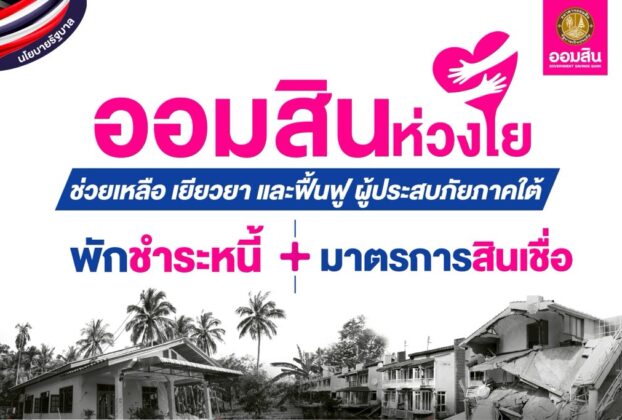 ออมสิน ออกมาตรการช่วยผู้ประสบภัยใต้ พักหนี้-ไม่คิดดอกเบี้ย กลุ่มไม่เกินล้าน นาน 12 เดือน ตามนโยบายรัฐ เติมมาตรการดูแลกลุ่มหนี้เกินล้านให้พักหนี้-ไม่คิดดอกเบี้ย นาน 3 เดือน พร้อมสินเชื่อเยียวยา ฟื้นฟู ดอกเบี้ย 0% ปีแรก