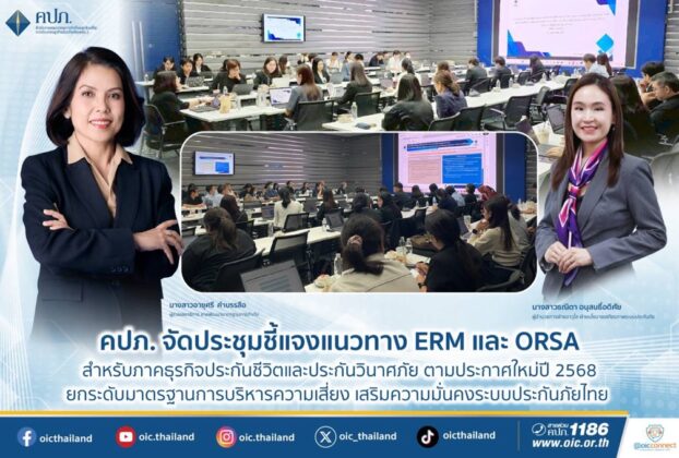 คปภ. จัดประชุมชี้แจงแนวทาง ERM และ ORSA สำหรับภาคธุรกิจประกันชีวิตและประกันวินาศภัยตามประกาศใหม่ปี 2568 ยกระดับมาตรฐานการบริหารความเสี่ยง เสริมความมั่นคงระบบประกันภัยไทย