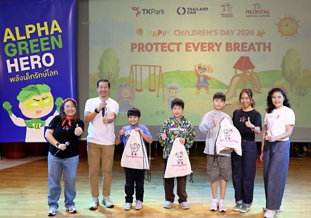 นายอิฎฐ์ อภิรักษ์ติวงศ์ ประธานเจ้าหน้าที่บริหารสายงานพัฒนาองค์กร พรูเด็นเชียล ประเทศไทย พร้อมด้วยพนักงานของบริษัทฯ ร่วมกับสมาคมเครือข่ายอากาศสะอาดเพื่อสุขภาพ และสถาบันอุทยานการเรียนรู้ TK Park จัดกิจกรรมวันเด็กแห่งชาติประจำปี 2569 ภายใต้แนวคิด “Alpha Green Hero พลังเด็กรักษ์โลก” ผ่านบูธกิจกรรม “Protect Every Breath – พลังเด็กปกป้องทุกลมหายใจ” ส่งเสริมการเรียนรู้ถึงความสำคัญของอากาศสะอาด สิ่งแวดล้อมที่ยั่งยืน พร้อมรับมือกับความท้าทายจากสภาพอากาศที่เปลี่ยนแปลงในปัจจุบันให้แก่เด็กและเยาวชน ณ อุทยานการเรียนรู้ TK Park ชั้น 8 ศูนย์การค้าเซ็นทรัลเวิลด์ เร็วๆ นี้