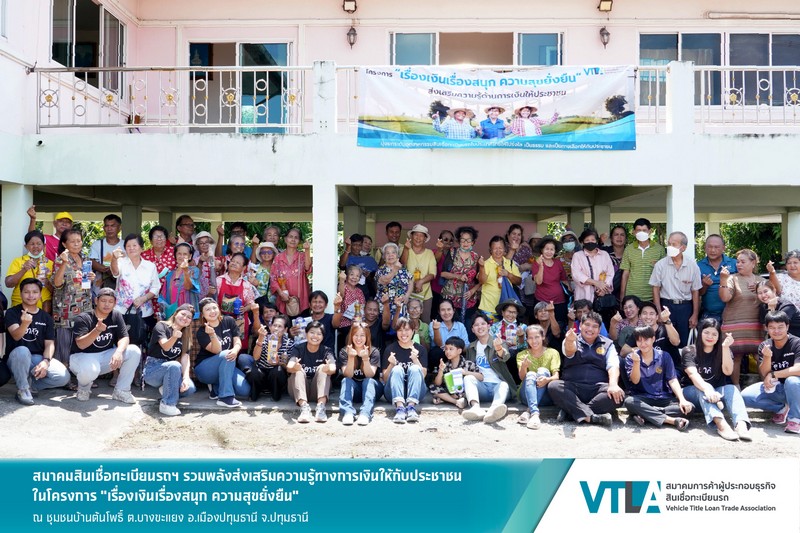โครงการ “เรื่องเงินเรื่องสนุก ความสุขยั่งยืน” จัดโดย สมาคมการค้าผู้ประกอบธุรกิจสินเชื่อทะเบียนรถ (VTLA) วัตถุประสงค์เพื่อส่งเสริมความรู้ทางการเงินขั้นพื้นฐานให้กับชาวบ้านชาวชุมชนทั่วประเทศ โดยใช้หลักสูตร “ปลดหนี้ ชีวิตเป็นสุข” และ “ออมเงินง่าย ๆ ที่ใคร ๆ ก็ทำได้” ผ่านความร่วมมือของสมาชิกสมาคมฯ ซึ่งปัจจุบันสมาคมมีสมาชิกผู้ประกอบการที่ได้รับใบอนุญาตจากธนาคารแห่งประเทศไทยจำนวนรวม 16 ราย มีสาขารวมกันทั่วประเทศกว่า 18,000 สาขา และมีฐานลูกค้ารวมกันกว่า 6 ล้านราย นอกจากนี้ทางสมาคมฯ ขอเรียนเชิญผู้ประกอบการสินเชื่อทะเบียนรถรายอื่น ๆ สมัครเป็นสมาชิกของสมาคมฯ ได้ที่เบอร์โทรศัพท์ 065-919-0644 หรือเยี่ยมชมรายละเอียดเพิ่มเติมเกี่ยวกับสมาคมฯ ได้ที่ www.vtla.or.th