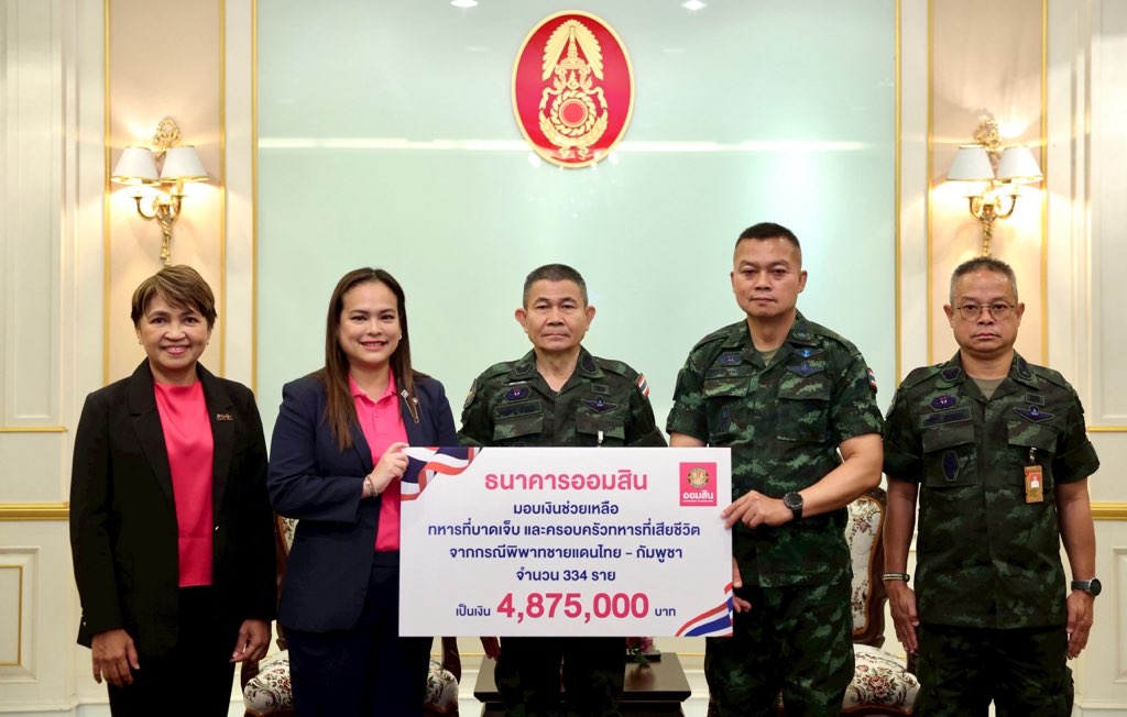 พลเอกเอกรัตน์ ช้างแก้ว ประธานคณะที่ปรึกษากองทัพบก เป็นสักขีพยาน ในโอกาสที่ พลโทบุญสิน พาดกลาง แม่ทัพภาคที่ 2 รับมอบเงินจำนวน 4,875,000 บาท โดยมี นางสาววชิรา การสุทธิ์ รองผู้อำนวยการธนาคารออมสิน กลุ่มการตลาดเพื่อความยั่งยืน เป็นผู้แทนธนาคารออมสินในการมอบเงิน เพื่อนำไปช่วยเหลือและเยียวยาทหารที่ได้รับบาดเจ็บ ทุพพลภาพ ตลอดจนดูแลครอบครัวของทหารผู้เสียสละชีวิตในการปฏิบัติหน้าที่รักษาอธิปไตยของชาติ จากเหตุการณ์ความไม่สงบบริเวณชายแดนไทย – กัมพูชา เพื่อเป็นขวัญ กำลังใจ และส่งเสริมคุณภาพชีวิตที่ดีขึ้น ณ กองบัญชาการกองทัพบก กรุงเทพมหานคร เมื่อวันที่ 23 กันยายน 2568 ทั้งนี้ที่ผ่านมาธนาคารได้ให้การสนับสนุนภารกิจเฉพาะหน้าอย่างต่อเนื่อง อาทิ การส่งมอบสิ่งของที่จำเป็น ได้แก่ ผ้าห่ม อาหารแห้ง อาหารปรุงสุก และน้ำดื่ม ให้แก่ศูนย์พักพิงชั่วคราวในพื้นที่จังหวัดสุรินทร์ ศรีสะเกษ บุรีรัมย์ อุบลราชธานี และตราด รวมถึงการสนับสนุนงบประมาณเพื่อการบริหารจัดการภายในศูนย์พักพิง ธนาคารออมสิน ในฐานะธนาคารเพื่อสังคม พร้อมยืนหยัดเคียงข้างประชาชนไทยในทุกวิกฤติ เพื่อร่วมก้าวข้ามช่วงเวลาที่ยากลำบากไปด้วยกัน โดยไม่ทอดทิ้งใครไว้ข้างหลัง