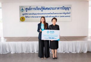 ดร.ชาติชาย พยุหนาวีชัย ผู้อำนวยการธนาคารออมสิน รับมอบพวงมาลัยแสดงความขอบคุณ จาก เด็กหญิง ขวัญยี่หวา นาลุน (น้องเนส) ตัวแทนเด็กโรคลิ้นหัวใจรั่วตั้